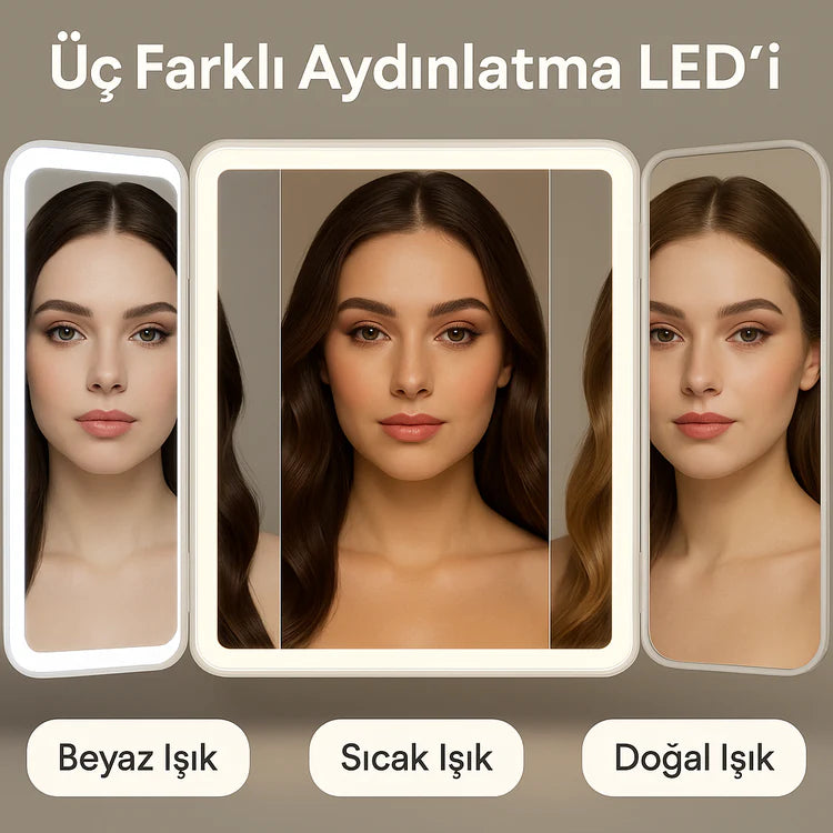 Geniş görüş alanı ve detaylı makyaj için 3 parçalı ayna